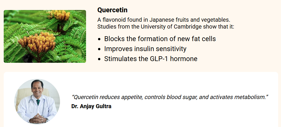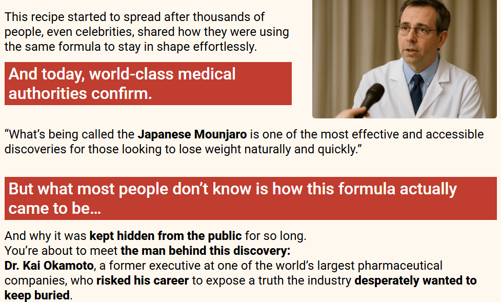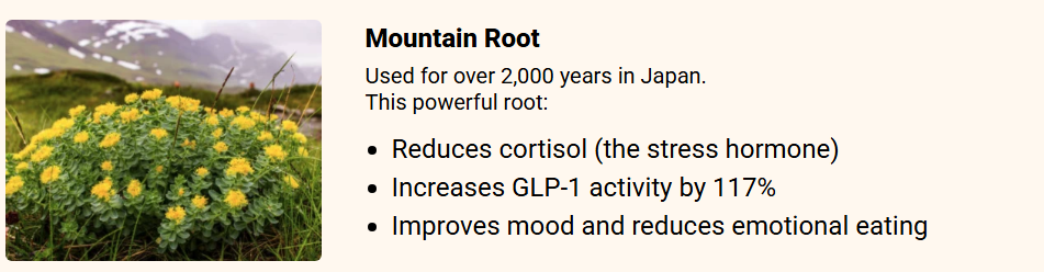 The only 100% natural formula developed with four pure Japanese ingredients, in the exact proportions that mimic the effects of synthetic Mounjaro, without the risks, without the side effects, and without the outrageous cost.